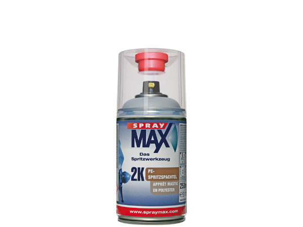 De 2K PE Spuitplamuur van SprayMax is een hoogvullende spuitplamuur voor het snel egaliseren van grotere oneffenheden, diepe schuurgroeven en ruw geprepareerde reparatieplekken.